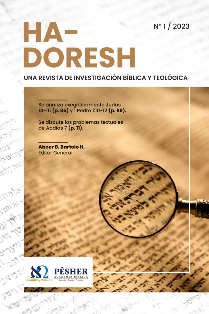 Abner B. Bartolo H., “Problemas textuales en Abdías 7”, Ha-Doresh 1 (2023): 11-17.